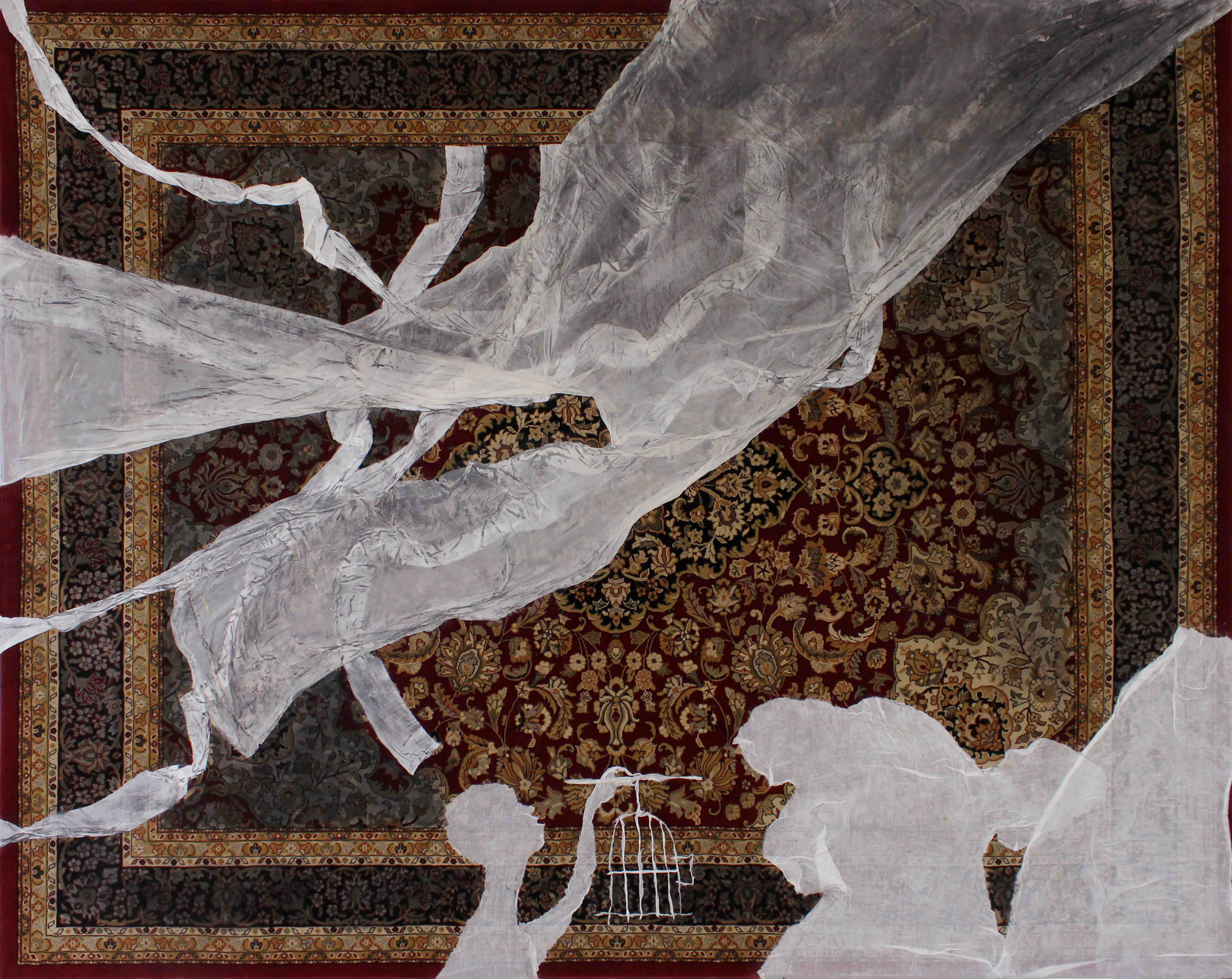 Gasa, carbón y acrílico